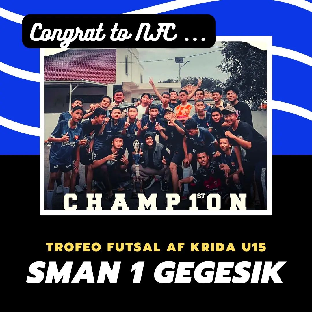 Congrat to NFC CIVITAS SMAN 1 GEGESIK dengan bangga !!!Mengucapkan Selamat kepada tim Futsal @negesfutsalclub yang telah meraih JUARA 1 U15 Krida 2022